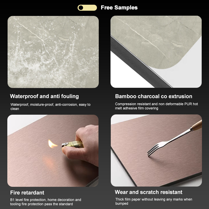 Bambus-Holzkohle-Marmor-Wandpaneele sind ein Material, das in modernen, hellen und luxuriösen Innenräumen verwendet wird und sich durch Schönheit, Vielseitigkeit, Haltbarkeit, Wasserbeständigkeit, Feuchtigkeitsbeständigkeit und Feuerbeständigkeit auszeichnet. Die Kombination aus Bambus-Holzkohle-Holzpaneelen und Marmormustern verleiht Innenräumen ein luxuriöses und modernes Aussehen und steigert ihre visuelle Attraktivität. Bambus-Holzkohle-Marmor-Wandpaneele können in einer Vielzahl von Umgebungen eingesetzt werden, darunter Wohnungen, Büros, Hotels, Restaurants und Geschäfte. Sie können in Wohnzimmern, Schlafzimmern, Fluren, Hintergründen und vielen anderen Bereichen installiert werden. Bambus-Holzkohle-Marmor-Furnier ist langlebig, umweltfreundlich, formaldehydfrei und abriebfest, wodurch sichergestellt wird, dass es dem täglichen Gebrauch standhält und seine Schönheit behält. Bambus-Holzkohle-Marmor-Wandpaneele hingegen haben eine ausgezeichnete Feuchtigkeitsbeständigkeit und eignen sich für den Einsatz in feuchten Bereichen wie Badezimmern und Küchen. Um Bambus-Holzkohle-Marmor-Wandpaneele zu erwerben, kontaktieren Sie uns bitte für Verfügbarkeit, Preise und Installationsoptionen!