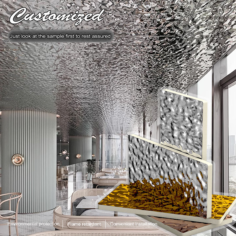 Leicht und luxuriös, das Water Ripple Holzfurnier Wandpaneel zeichnet sich durch ein attraktives, wasserähnliches Design aus, das die Innenästhetik verbessert und gleichzeitig feuer-, wasser- und feuchtigkeitsbeständig ist, wodurch eine sichere und luxuriöse Umgebung geschaffen wird. Holzfurnier-Wandpaneele verfügen über ein subtiles Wasserwellen-Design, das der Wand visuelle Tiefe und Attraktivität verleiht. Die einzigartige Textur erzeugt einen fesselnden Effekt und unterstreicht die Schönheit des Raumes. Die Kombination aus Eleganz und Raffinesse verleiht dem Wohnraum ein Gefühl moderner Verfeinerung. Die Wandpaneele sind feuer- und hitzebeständig. Sie bieten einen hervorragenden Brandschutz für ein hohes Maß an Sicherheit. Praktisch gestaltete Wandpaneele sind auch wasser- und feuchtigkeitsbeständig. Sie sind effektiv wasserdicht, um Langlebigkeit zu gewährleisten und feuchtigkeitsbedingte Probleme zu vermeiden. Der direkte Kauf unserer Wandpaneele ab Werk spart Geld und verbessert die Qualität. Erleben Sie die Bequemlichkeit und Erschwinglichkeit des Direktverkaufs ab Werk. Die Wandpaneele sind einfach zu installieren, sparen Installationszeit und -aufwand und verfügen über eine pflegeleichte Oberfläche, die eine problemlose Reinigung gewährleistet. Sie verleihen der Innenarchitektur Eleganz und Praktikabilität und schaffen ein einzigartiges Stilambiente, das die Attraktivität eines Raumes steigert. Das Produkt kombiniert Schönheit, Flexibilität und den Glamour eines Wasserfalldesigns, um Innenräume aufzuwerten.